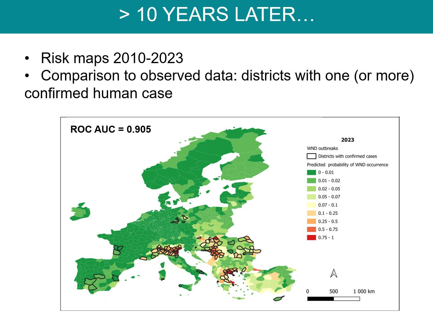 Annelise Tran a présenté différentes applications de l'utilisation des images satellites pour cartographier le risque de transmission de différentes maladies, comme la fièvre du Nil Occidental.