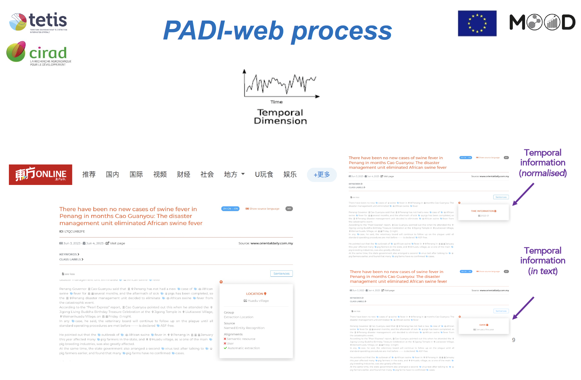 Lors de la session consacrée à la veille événementielle, Mathieu Roche a présenté les méthodes en IA développées pour analyser les informations spatio-temporelles et thématiques issues des médias via la plateforme PADI-web. Cette intervention a été suivie de deux présentations illustrant l’application de ces approches en santé animale (UMR ASTRE) et en santé des plantes (UMR PHIM et ESV). L’ensemble met en lumière la dimension pluridisciplinaire des travaux menés au sein de TETIS, pleinement inscrits dans la démarche One Health / Une seule santé, à l’interface entre environnement, santé et société.